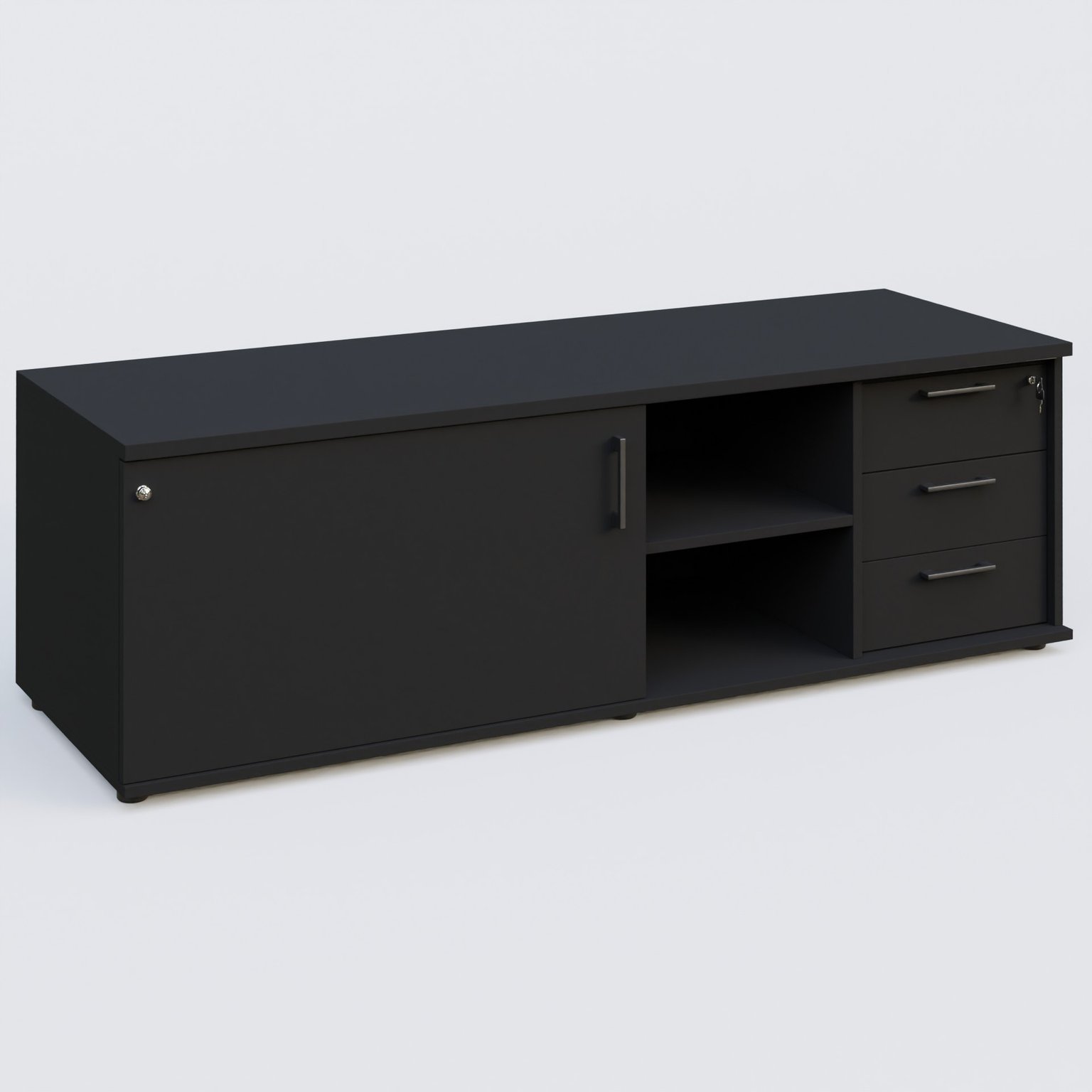 Caisson USE ME avec caisson trois tiroirs, porte à gauche. Caisson Noir et portes Noir.