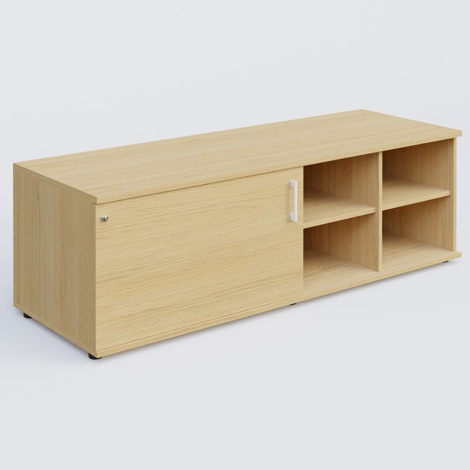 Caisson USE ME sans caisson positioné à gauche de l'utilisateur. Hauteur 57 cm, profondeur 62 cm et largeur 180 cm.