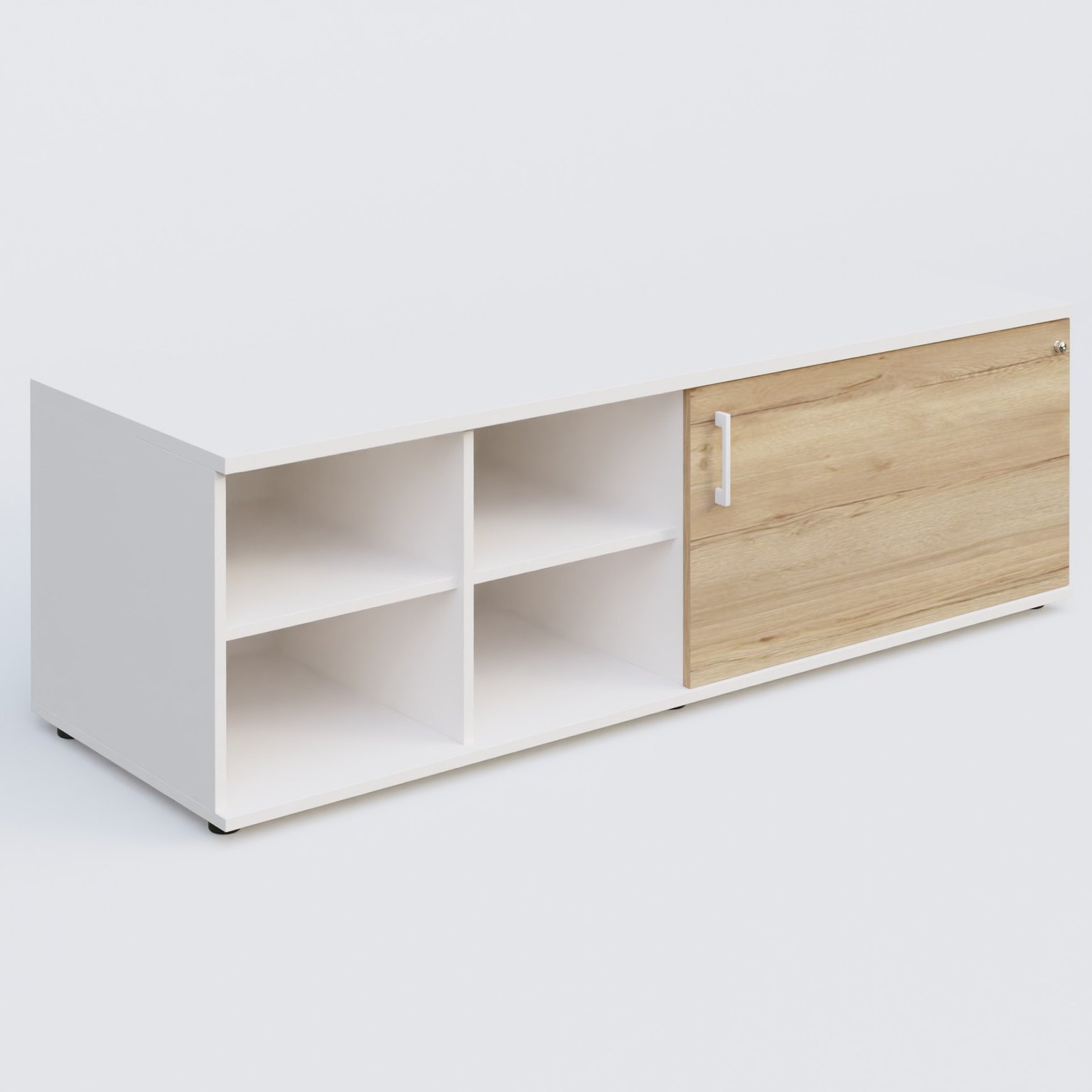 Caisson USE ME sans caisson, porte à droite. Caisson Blanc et portes Chêne naturel.