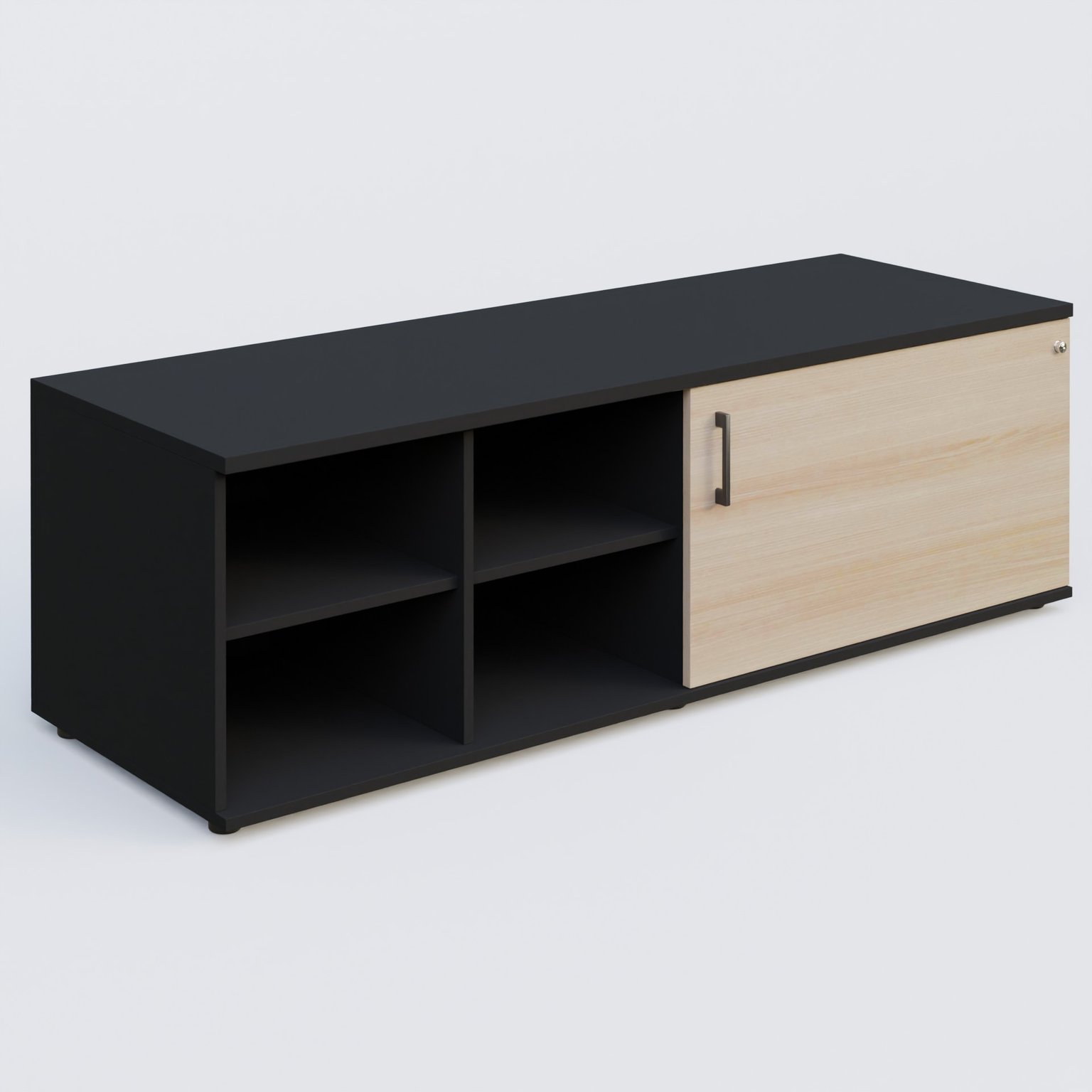Caisson USE ME sans caisson, porte à droite. Caisson Noir et portes Acacia.