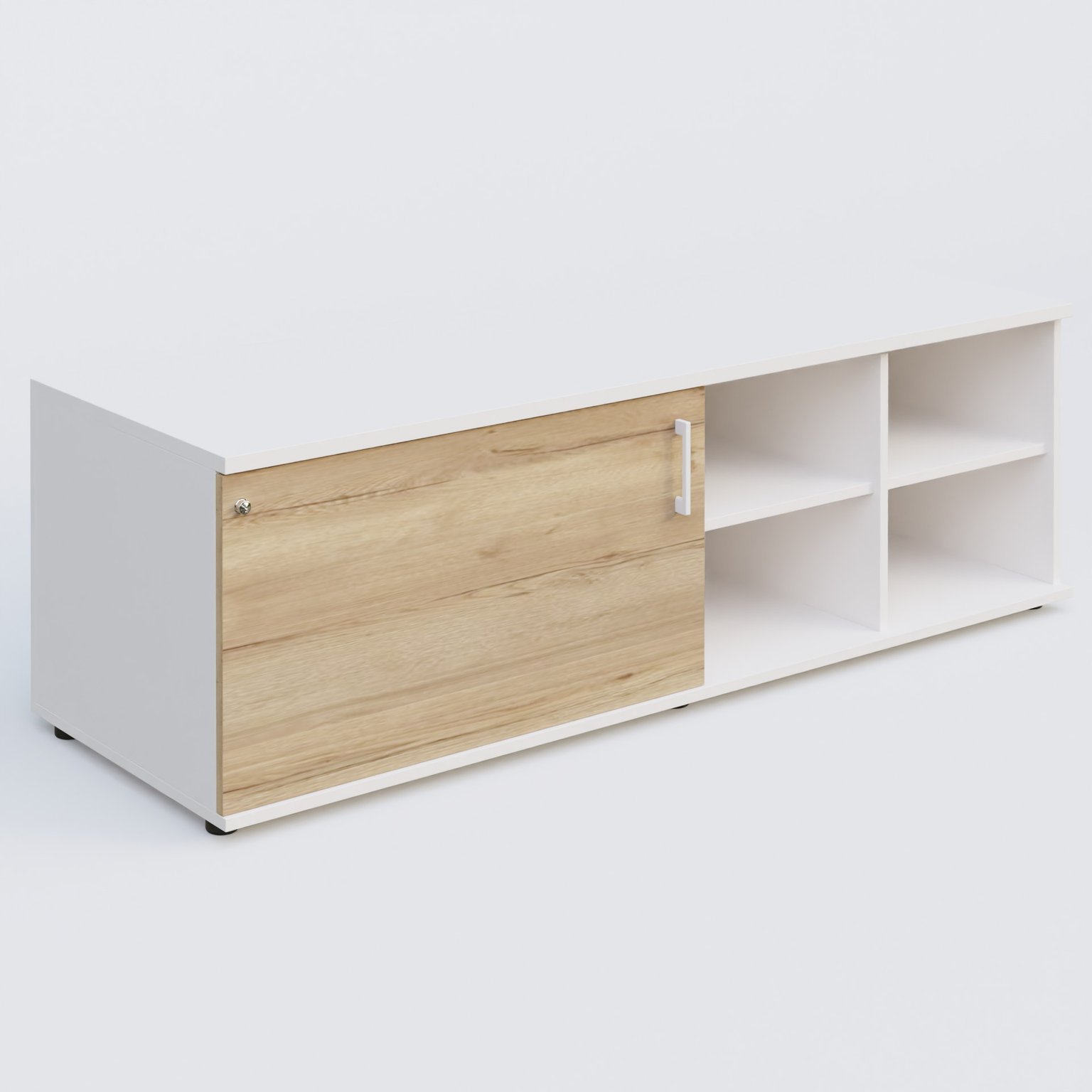 Caisson USE ME sans caisson, porte à gauche. Caisson Blanc et portes Chêne naturel.