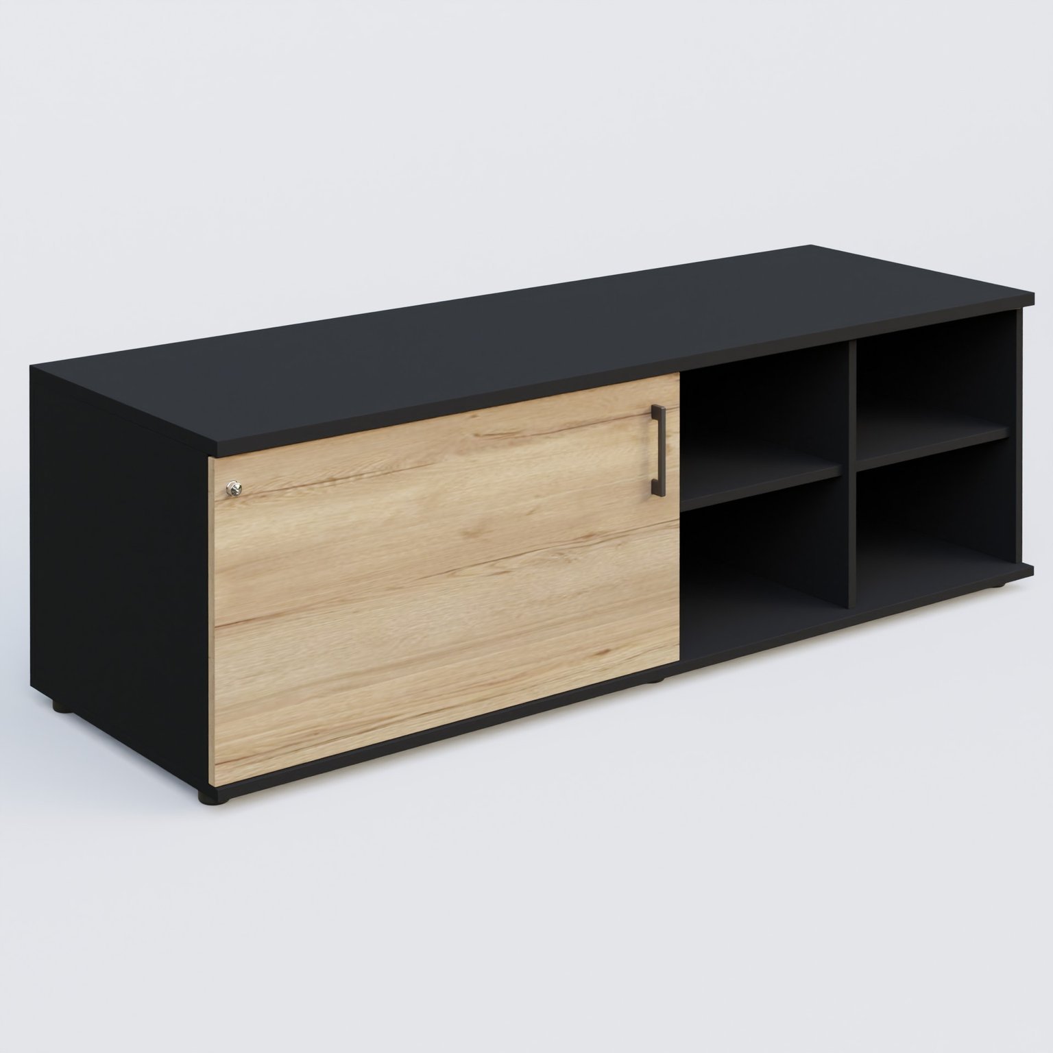 Caisson USE ME sans caisson, porte à gauche. Caisson Noir et portes Chêne naturel.