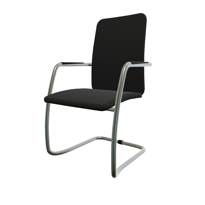 CARLTON fauteuil haut dossier. piétement luge chromé. assise et dossier vinyle RNN coloris noir