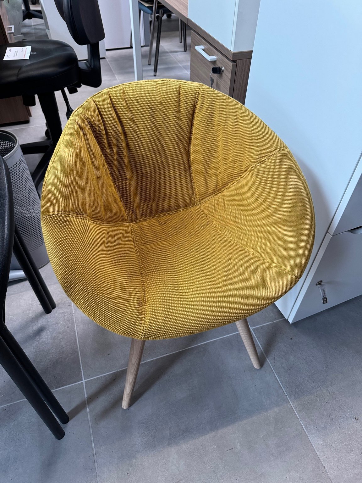 Chaise 4 pieds assise jaune piétement bois