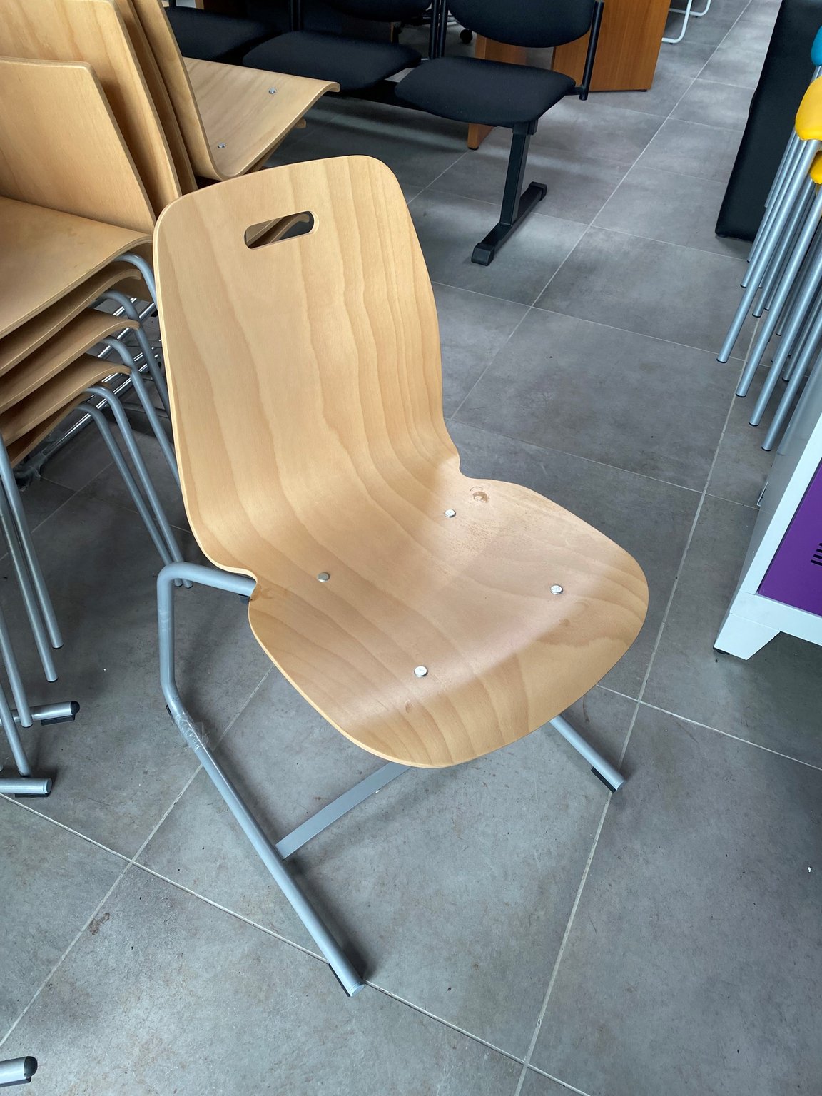 - Chaise de cafétariat appui sur table coque bois hêtre piétement couleur aluminium