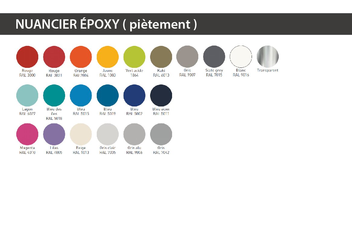 - Piètement époxy coloris selon nuancier.