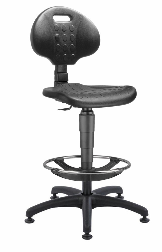 Tabouret assis-debout polyuréthane haut avec repose-pieds, structure nylon noir
