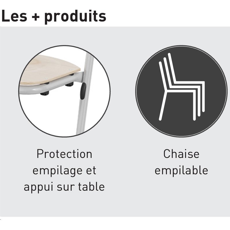 - Chaise empilable par 4 et appui sur table.