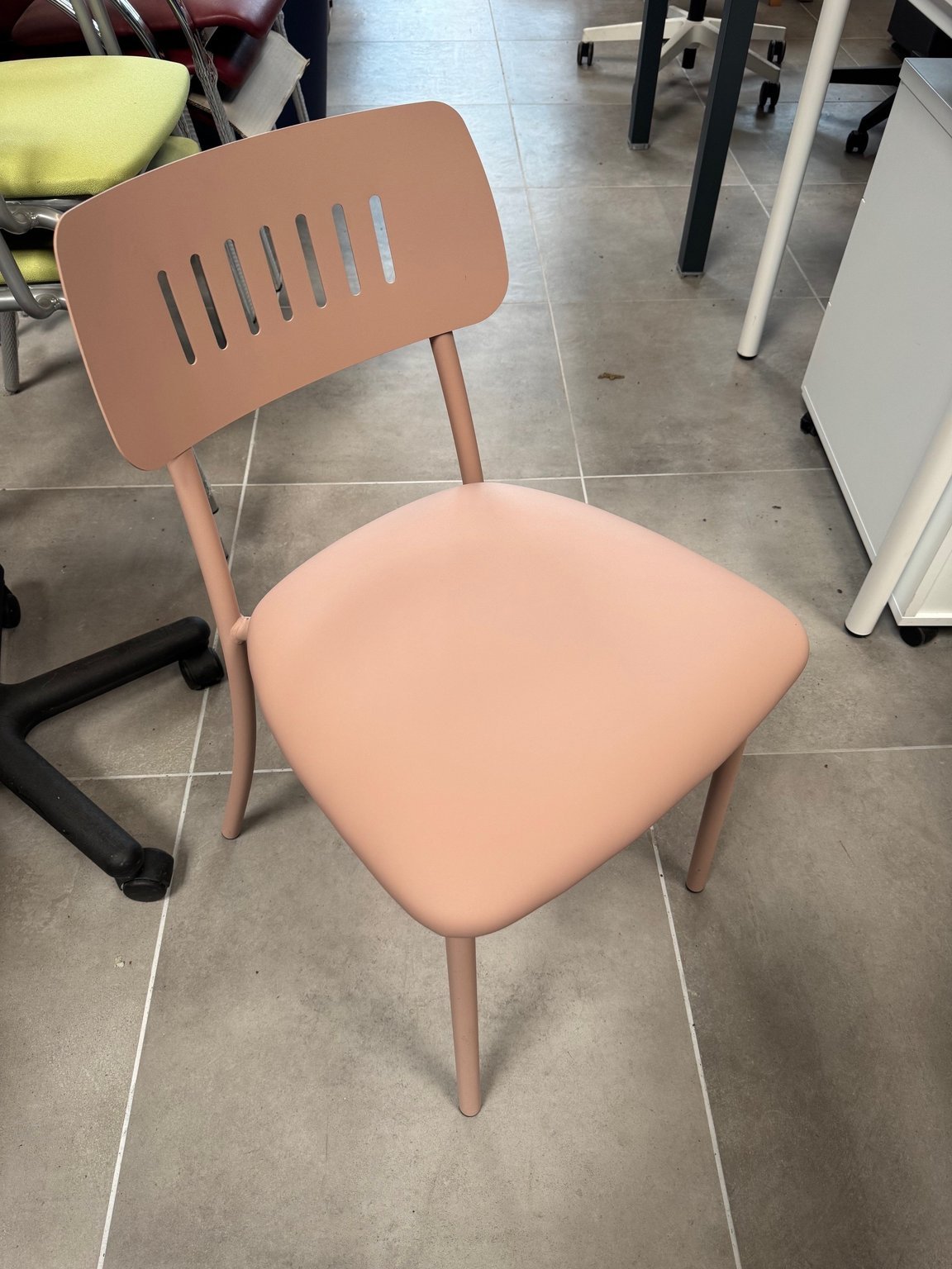 - Chaise structure 4 pieds assise en pvc rose clair, dossier en métal