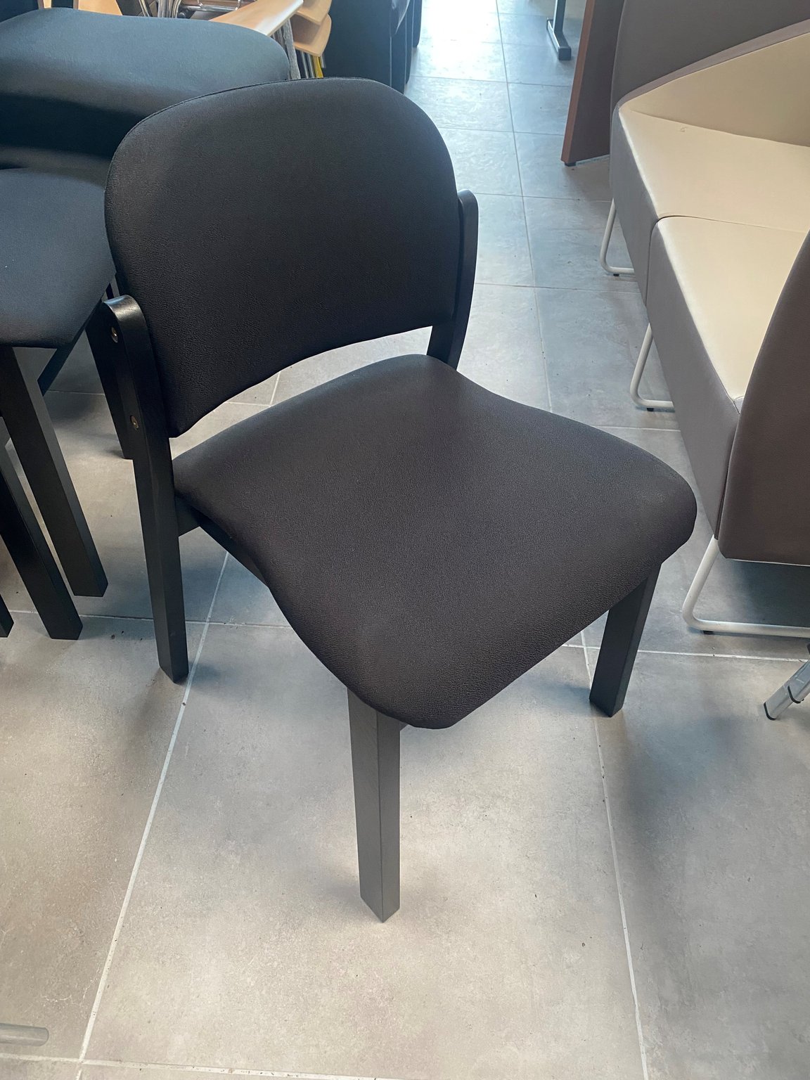 - Chaise structure 4 pieds en bois noir avec assise et dossier en tissu noir