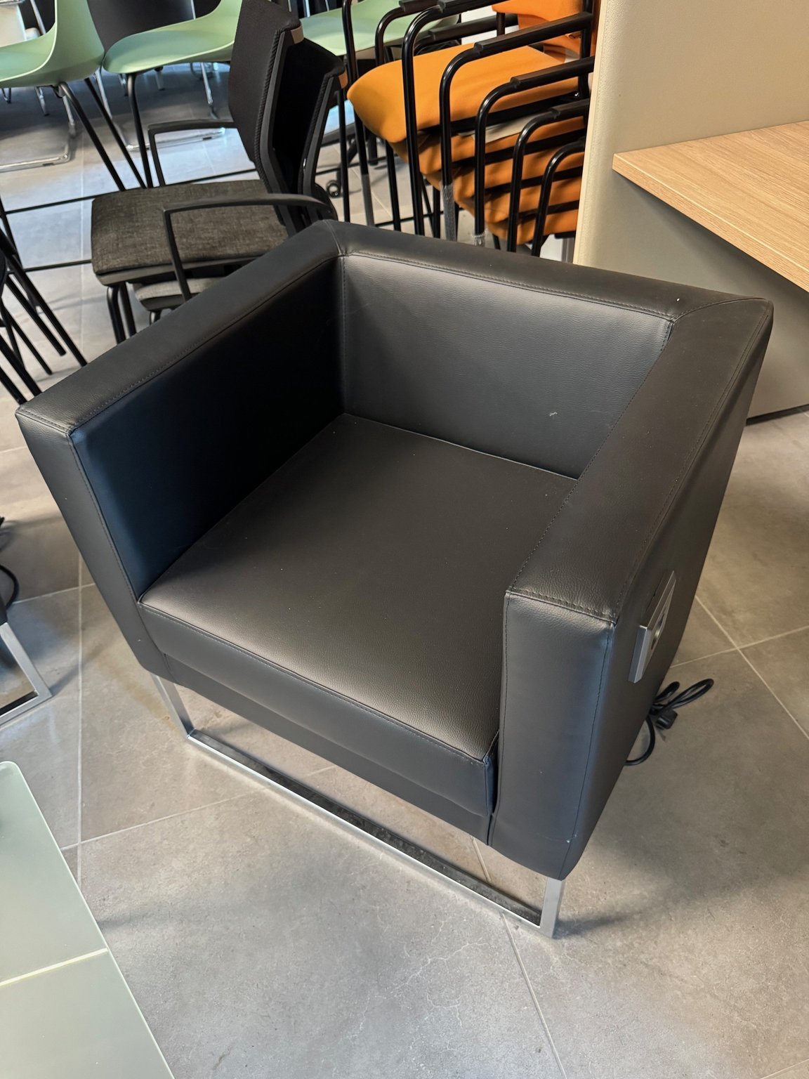 - Chauffeuse en revêtement PVC noir avec prise de courant sur le côté gauche