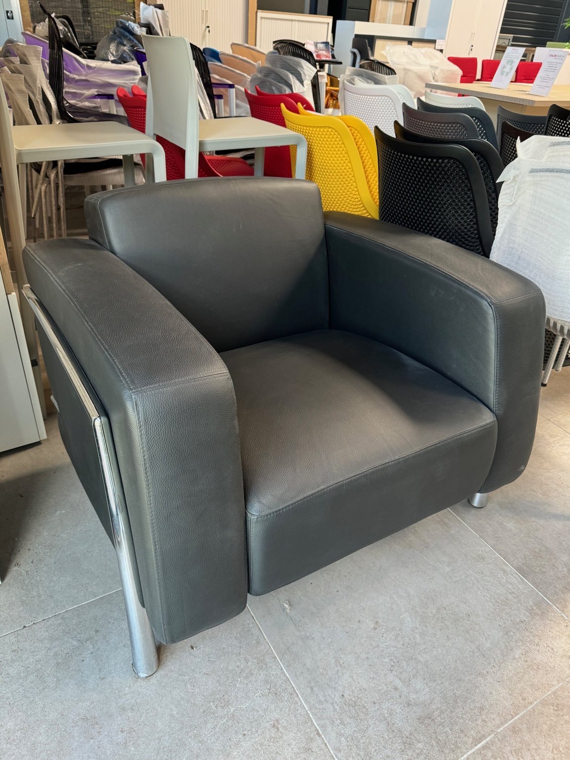 Chauffeuse revêtement PVC noir structure chromé