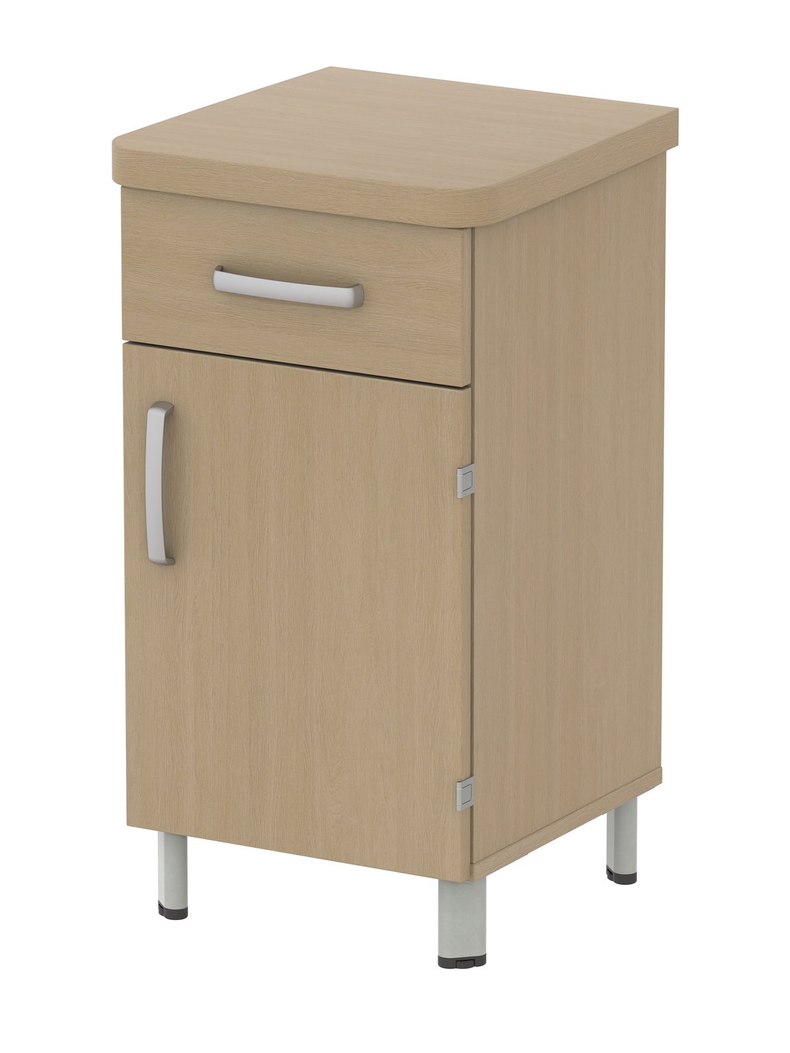 Chevet DANAÉ SIGNATURE 1 tiroir 1 porte mélaminé piètement époxy - L44xP46xH82 cm - Gris RAL 9006