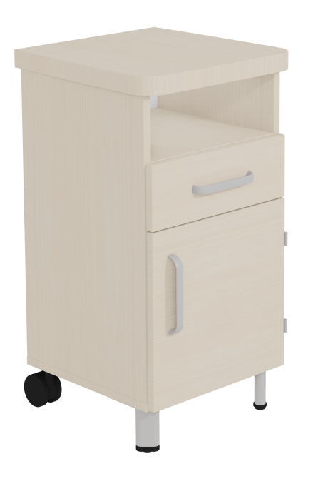Chevet DANAÉ SIGNATURE 2 roues 1 niche/tiroir/porte méla. pièt.époxy - L44xP46xH82 cm - Gris RAL 9006