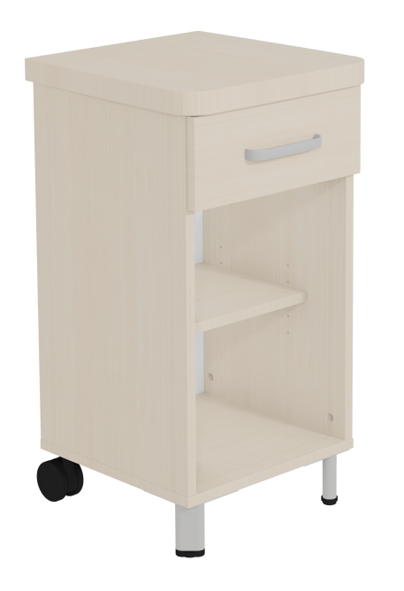 Chevet DANAÉ SIGNATURE 2 roues 1 tiroir mélaminé piètement époxy - L44xP46xH82 cm - Gris RAL 9006