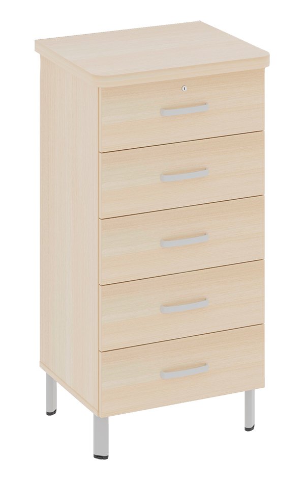 Chiffonier DANAÉ SIGNATURE 5 tiroirs mélaminé piètement époxy - L64xP54xH120 cm - Gris alu RAL 9006
