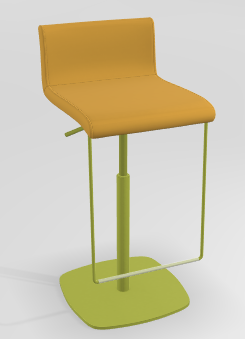 Cocktail, Chaise haute oscillante, réglable 58/83cm. Structure tube embase 38x38cm Epoxy noir, et tissu mosaïc orange mat