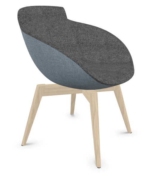 Coco - Fauteuil 4 pieds bois naturel (W1). Tissu Int Step L34 - Tissu Ext Step Bleu gris (L06)