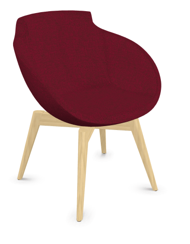 Coco - Fauteuil 4 pieds bois naturel (W1). Tissu Int Step Rouge (L18) - Tissu Ext Step Rouge (L18)