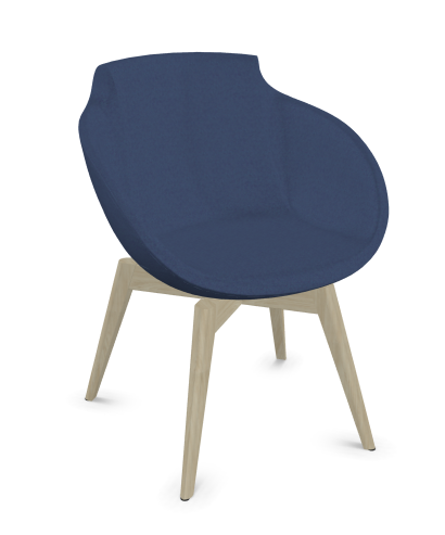 Coco - Fauteuil 4 pieds bois naturel (W1). Tissu Int Synergy Bleu Nuit SY62 (S62) - Tissu Ext Synergy Bleu Nuit SY62 (S62)