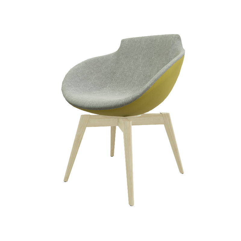 Coco - Fauteuil 4 pieds bois naturel (W1). Tissu Int Synergy Gris Clair SY08 (S08) - Tissu Ext Synergy Jaune SY45 (S45)