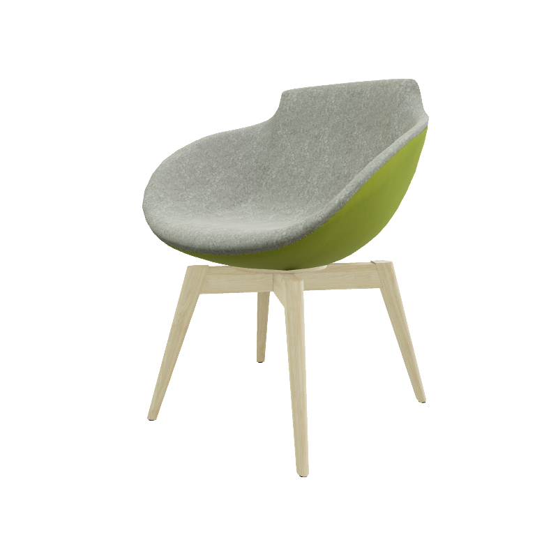 Coco - Fauteuil 4 pieds bois naturel (W1). Tissu Int Synergy Gris Clair SY08 (S08) - Tissu Ext Synergy Vert Clair SY46 (S46)