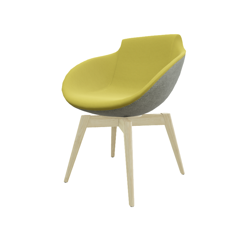 - Coco - Fauteuil 4 pieds bois naturel (W1). Tissu Int Synergy Jaune SY45 (S45) - Tissu Ext Synergy Gris Clair SY08 (S08)
