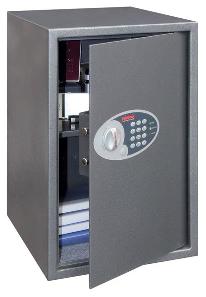 Coffre de sécurité L.31xP.37xH.56cm - 76 Litres / 23kg - 1 tablette, verrouillage électronique, coloris graphite métallisé