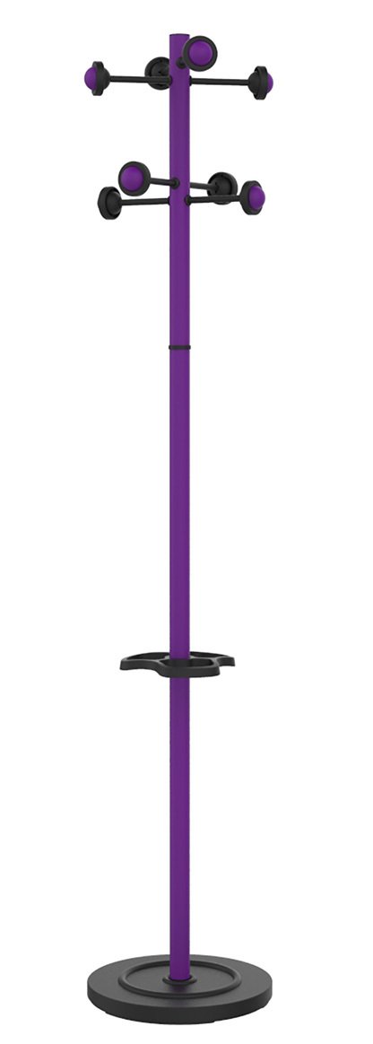 COLOR Portemanteau 8 patères, ht 175cm, tête pivotante, porte-parapluies, lilas