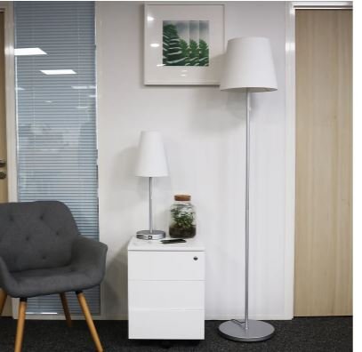 CUP Lampadaire abat jour forme conique tissu BLANC pietement fin -Haut 155cm