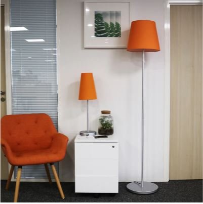 CUP Lampadaire abat jour forme conique tissu Oange pietement fin -Haut 155cm