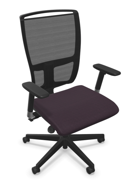 DANDY MANAGER MESH siège mécanique synchrone décalé avec translation d'assise, soutien lombaire réglable, tissu LUCIA coloris prune, dos résille noire sur cadre noir, embase noire