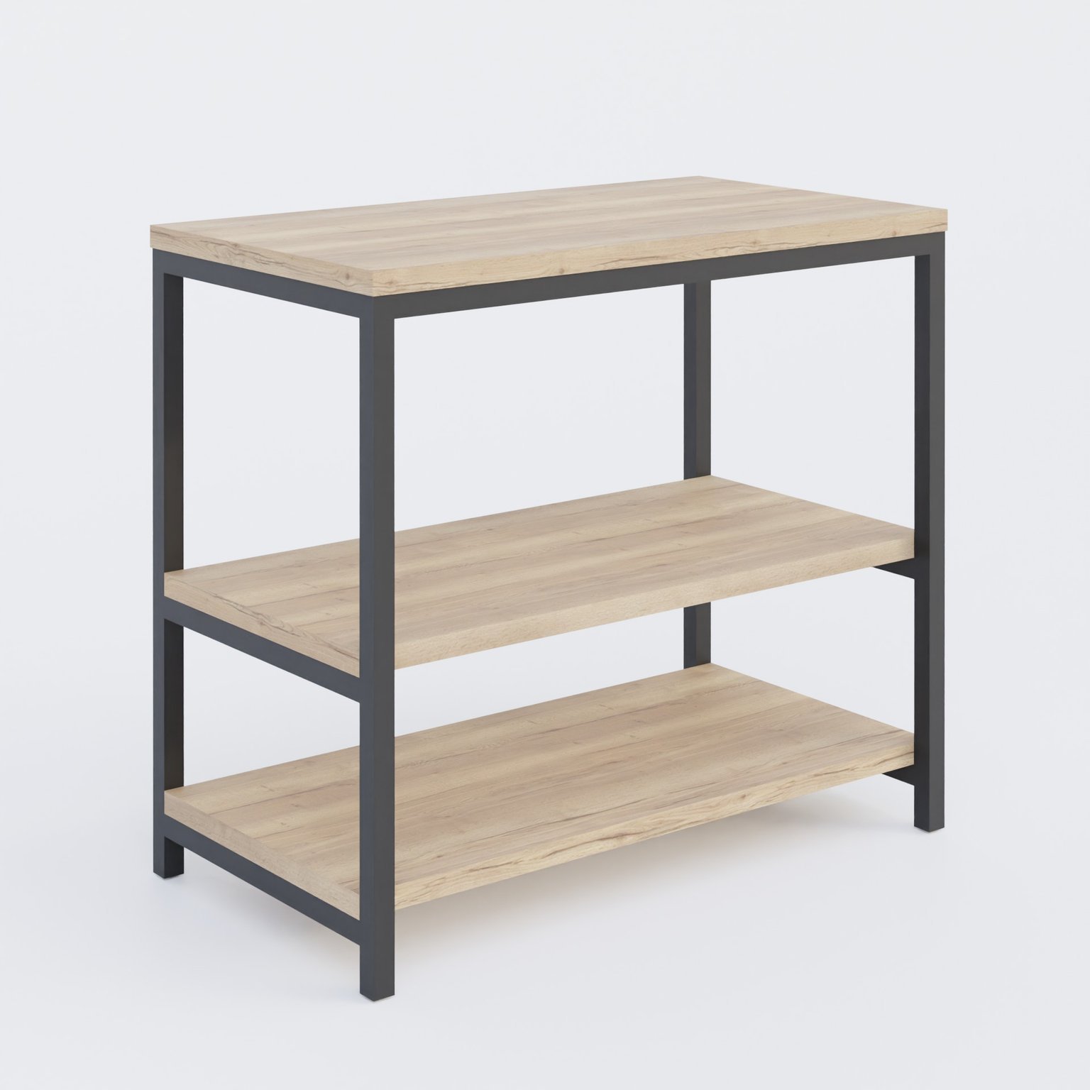 Montants tubes d'acier 25*25mm laqués Noir. Plateau 25 mm Chêne naturel