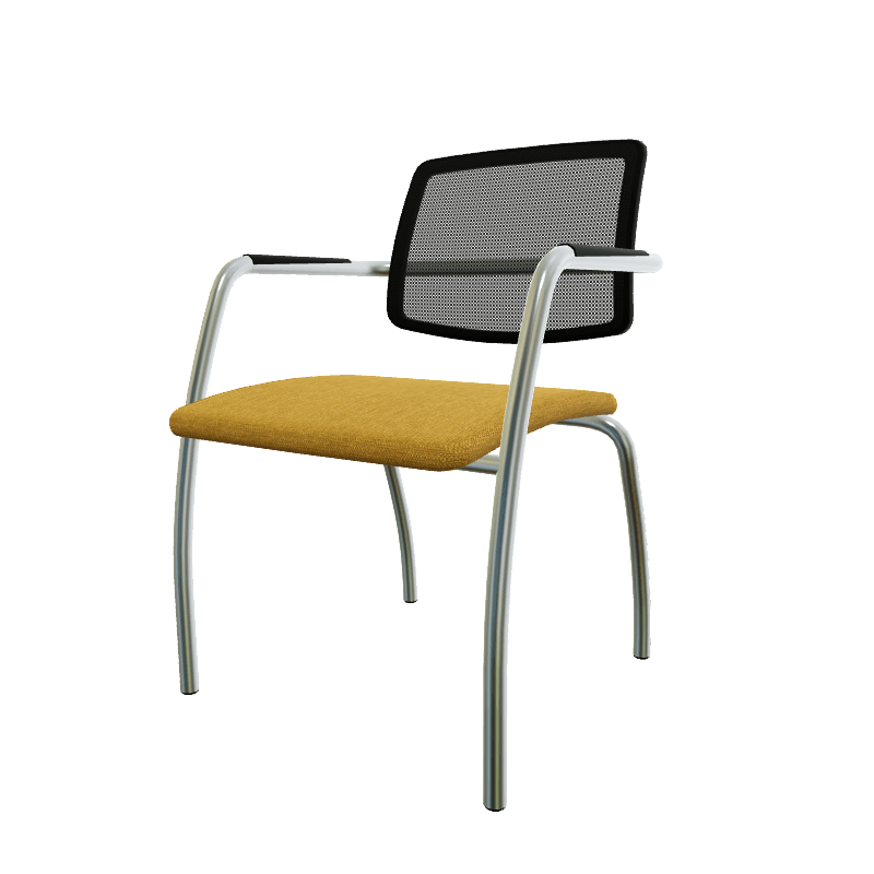 Diva - Chaise dos résille- Piétement 4 pieds chrome (CH).Assise tissu Berta Moutarde (AD7)