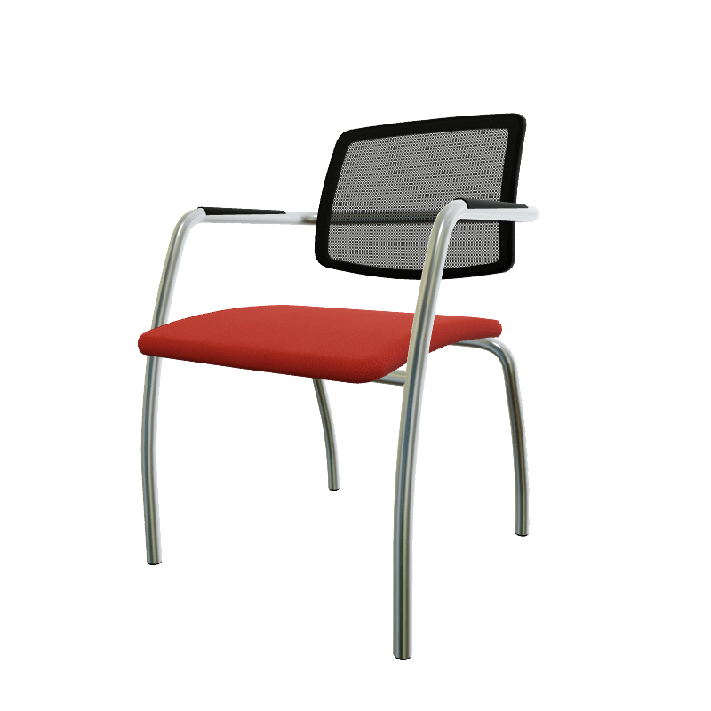 Diva - Chaise dos résille- Piétement 4 pieds chrome (CH).Assise tissu Vinyle Rouge DND (D15)