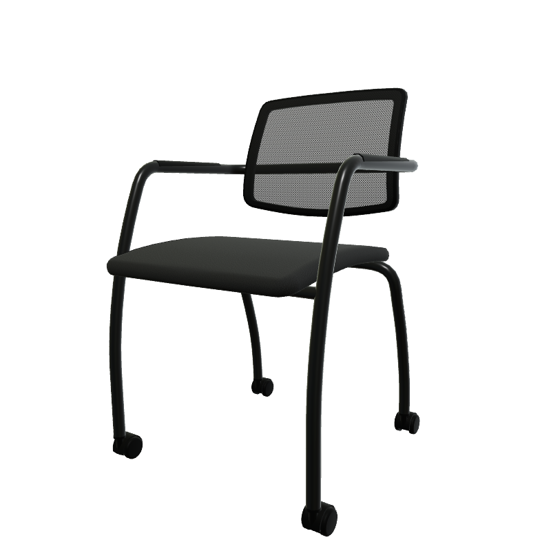 ZEN mesh visiteur - Chaise 4 pieds roulettes accotoirs laqué noir (A).Assise tissu et dossier résille Bondai Noir (8033)