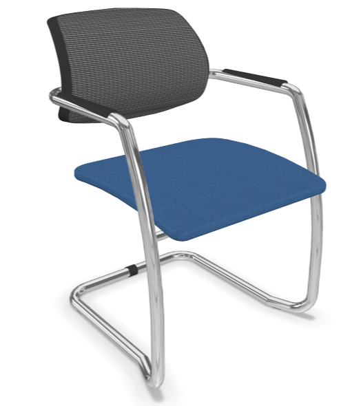 Diva - Chaise dos résille- Piétement luge chrome (CH).Assise tissu Bondai Bleu (6003)