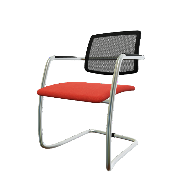- Diva - Chaise dos résille- Piétement luge chrome (CH).Assise tissu Vinyle Rouge DND (D15)