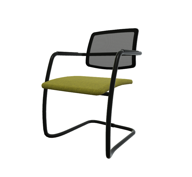 Diva - Chaise dos résille- Piétement luge laqué noir (A).Assise tissu Step Vert (L08)