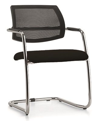 DIVA fauteuil dos résille. piétement luge chromé assise tissu BONDAI coloris noir dossier résille coloris noir