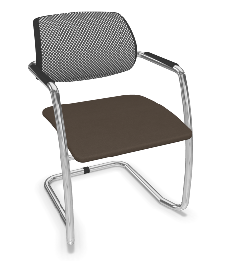 DIVA fauteuil dos résille. piétement luge chromé. assise vinyle RNN coloris noir dossier résille coloris noir