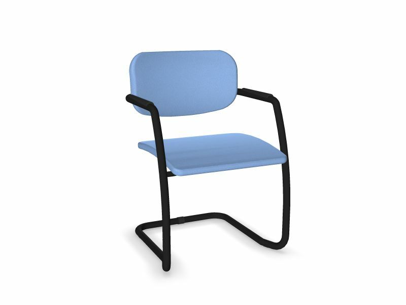 DIVA fauteuil dos tissu. piétement luge laqué noir. assise et dossier tissu BONDAI coloris bleu clair