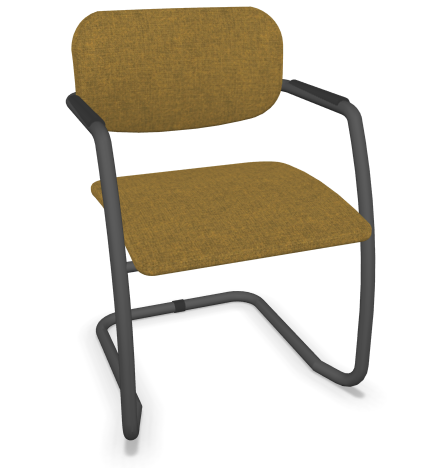 DIVA fauteuil dos tissu. piétement luge laqué noir assise et dossier tissu STEP coloris jaune chiné