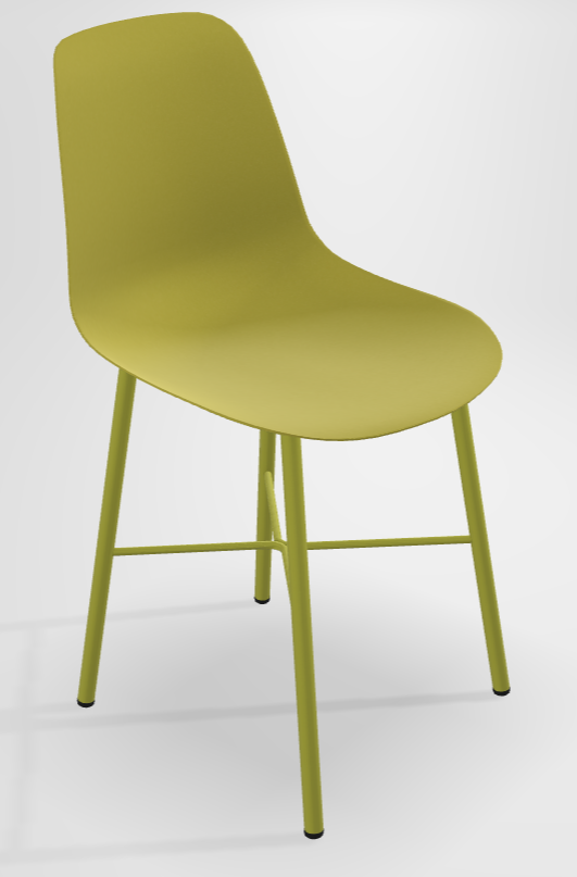 Dixie. chaise structure 4 pieds métal tube rond diam 25mm coloris vert. coque vert hauteur assie 46 cm