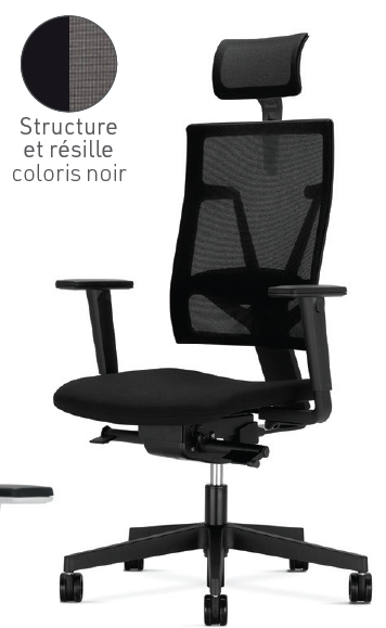 - E-T BLACK MESH fauteuil manager + têtière avec accotoirs mécanique synchrone décalé avec translation d'assise