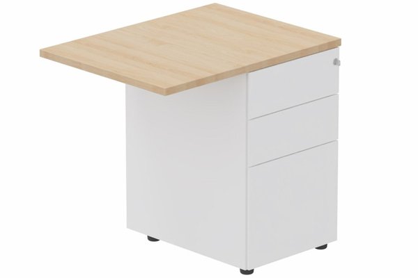 Extension retour direct sur caisson HB métal 80 x 60 cm, 3 tiroirs, plateau hêtre, structure blanc