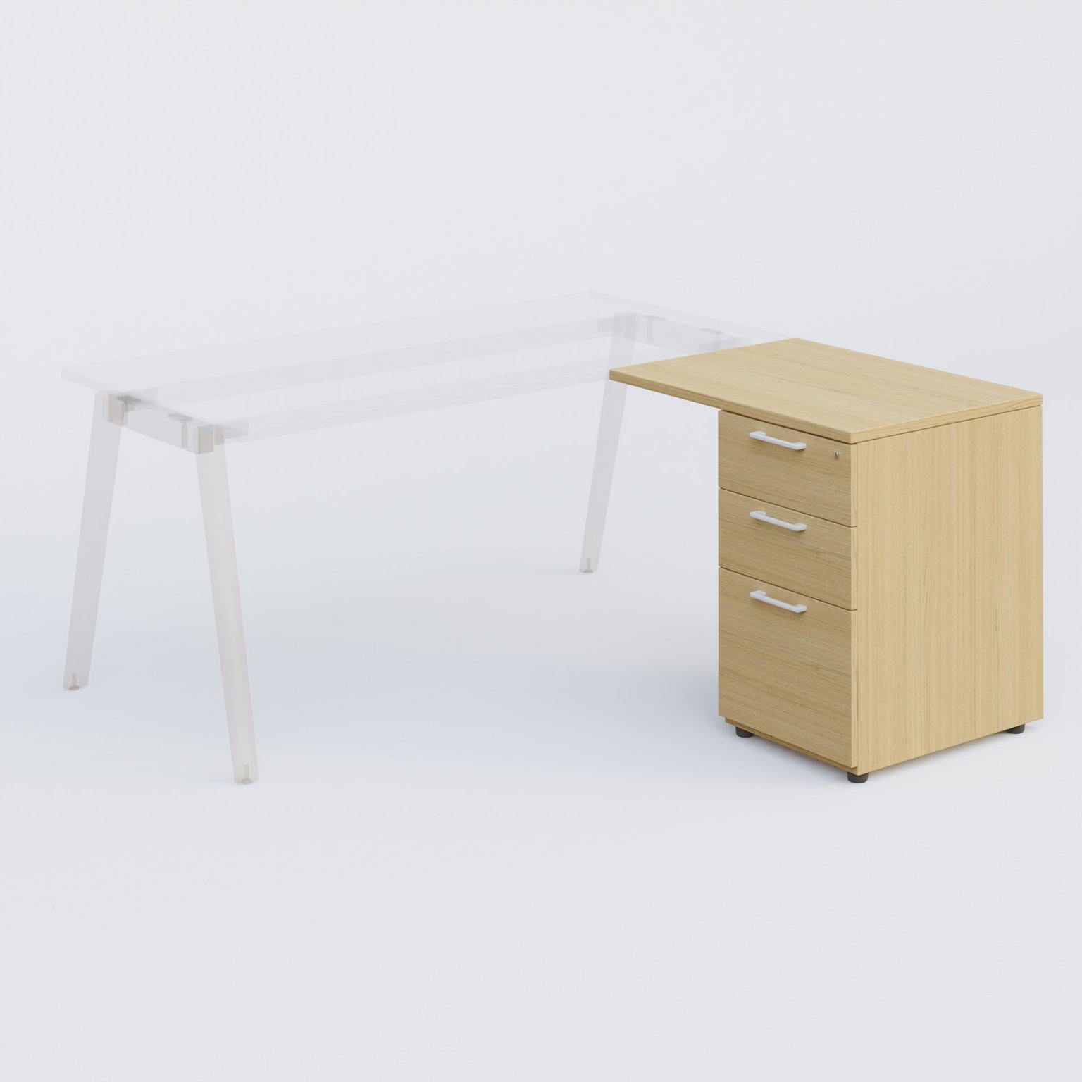 Extensions retour sur caisson 80*60 cm avec 3 tiroirs pour bureau K9. Plateau Chêne clair et caissonChêne clair.