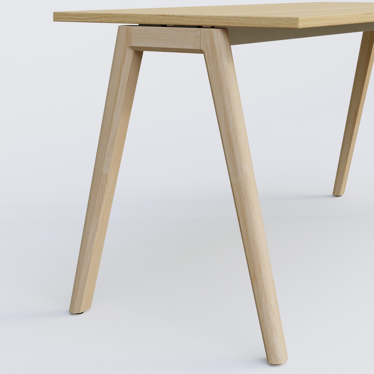 Extensions retour sur pied pour bureau K9 piètement incliné en bois et plateau 100*60 cm. Plateau Chêne clair et pietement bois massif de hêtre.
