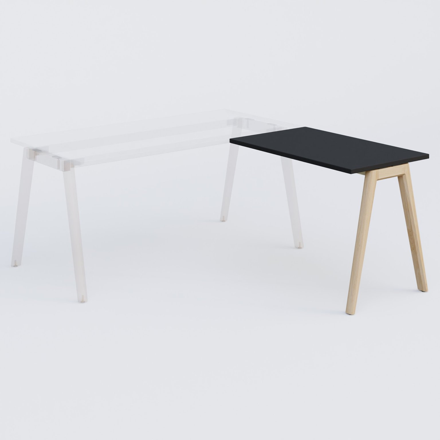 Extensions retour sur pied pour bureau K9 piètement incliné en bois et plateau 100*60 cm. Plateau Noir et pietement bois massif de hêtre.