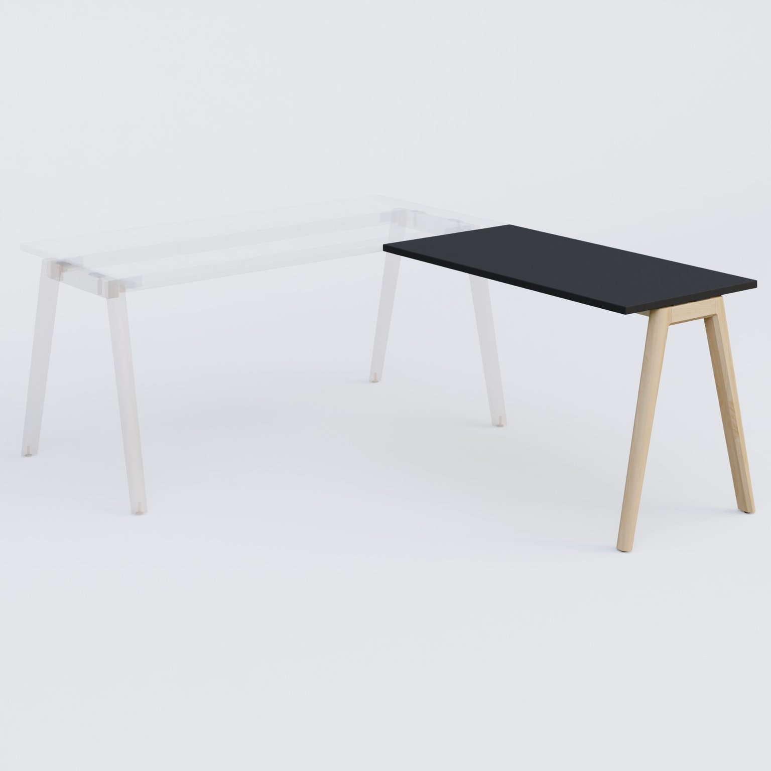 Extensions retour sur pied pour bureau K9 piètement incliné en bois et plateau 120*60 cm. Plateau Noir et pietement bois massif de hêtre.